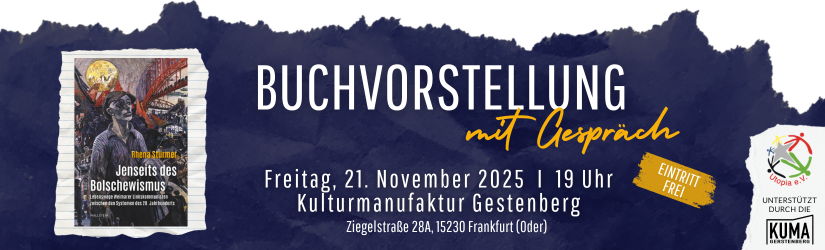 Eine Buchvorstellung über Ideen, Netzwerke und die gesellschaftlichen Visionen des 20. Jahrhunderts jenseits der großen Parteien. Im Anschluss gibt es Raum für Fragen, Diskussion und gemeinsamen Austausch in entspannter Atmosphäre. Für warmes Essen (gegen Spende) ist gesorgt. Getränke gibt´ s zu KUMA-Preisen an der Bar.